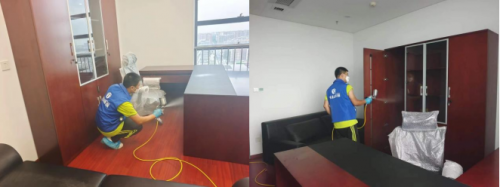 施工第3道工序:对细小家具、抽屉、床垫、木制镶嵌柜子进行除味工作,确保异味明显降低,无刺激异味(人员可以正常进出)。