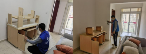 施工第3道工序:对细小家具、抽屉、床垫、木制镶嵌柜子进行除味工作,确保异味明显降低,无刺激异味(人员可以正常进出)。