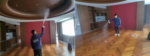 施工第1道:完全分解空气中游离态污染物,采用方法:全空间雾化技术(空调新风窗户需关闭)。