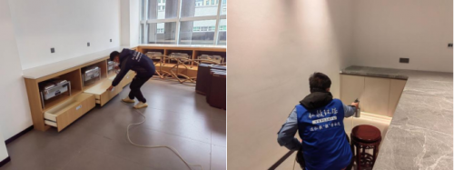 施工第3道工序:对细小家具、抽屉、床垫、木制镶嵌柜子进行除味工作,确保异味明显降低,无刺激异味(人员可以正常进出)。